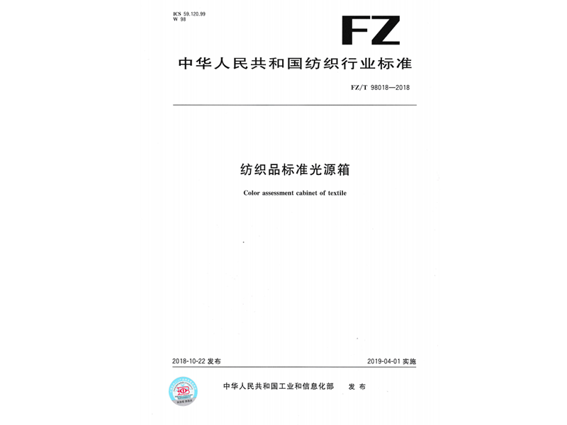 參與起草《紡織品標(biāo)準(zhǔn)光源箱》(FZ/T 98018-2018),該標(biāo)準(zhǔn)由中華人民共和國工業(yè)和信息化部于 2018-10-22 發(fā)布