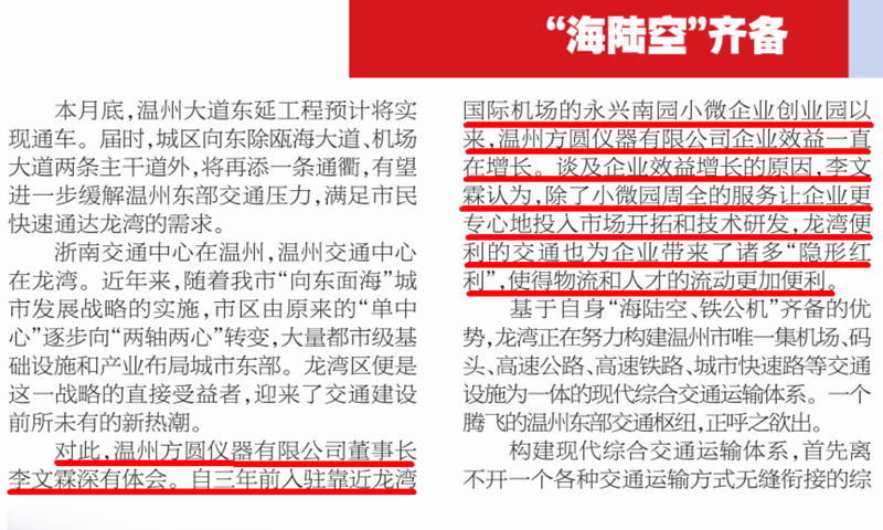 日前,溫州日?qǐng)?bào)記者采訪了溫州方圓儀器有限公司董事長(zhǎng)李文霖先生。對(duì)公司入駐靠近龍灣國(guó)際機(jī)場(chǎng)的永興南園以來(lái)取得的快速發(fā)展給予了充分肯定,稱(chēng)贊了公司效益的巨大提升。談及企業(yè)效益增長(zhǎng)的原因,李文霖認(rèn)為,除了小微園帶來(lái)周全的服務(wù)讓企業(yè)更專(zhuān)心地投入市場(chǎng)開(kāi)拓和技術(shù)研發(fā),龍灣便利的交通也為企業(yè)帶來(lái)了諸多隱形紅利,使得物流和人才的流動(dòng)更加便利。愿溫州方圓儀器有限公司更上一層樓。